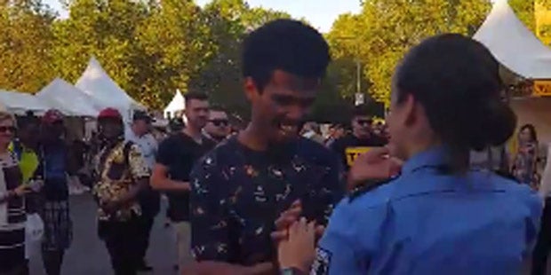 Hüftschwung samt Schlagstock, Pistole und Handschellen: Das Video einer tanzenden Berliner Polizistin beim Straßenfest Karneval der Kulturen ist ein Hit im Internet. Rund 1,4 Millionen Million Mal wurde der Clip bis Dienstagvormittag bei Facebook angesehen. Es zeigt, wie eine junge Beamtin in voller Dienstmontur mit einem Besucher zu Sambarhythmen tanzt.