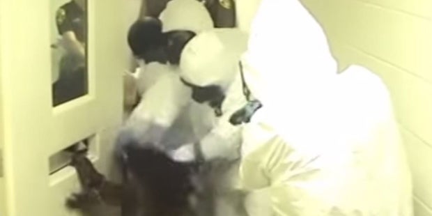 Das am Donnerstag freigegebene Video zeigt, wie die Beamten, die Schutzanzüge und Gasmasken tragen, der Afroamerikanerin Natasha McKenna in ihrer Zelle Handschellen anlegen und ihr das Gesicht verdecken, nachdem sie in ihrer Zelle ihre Notdurft verrichtet hatte.