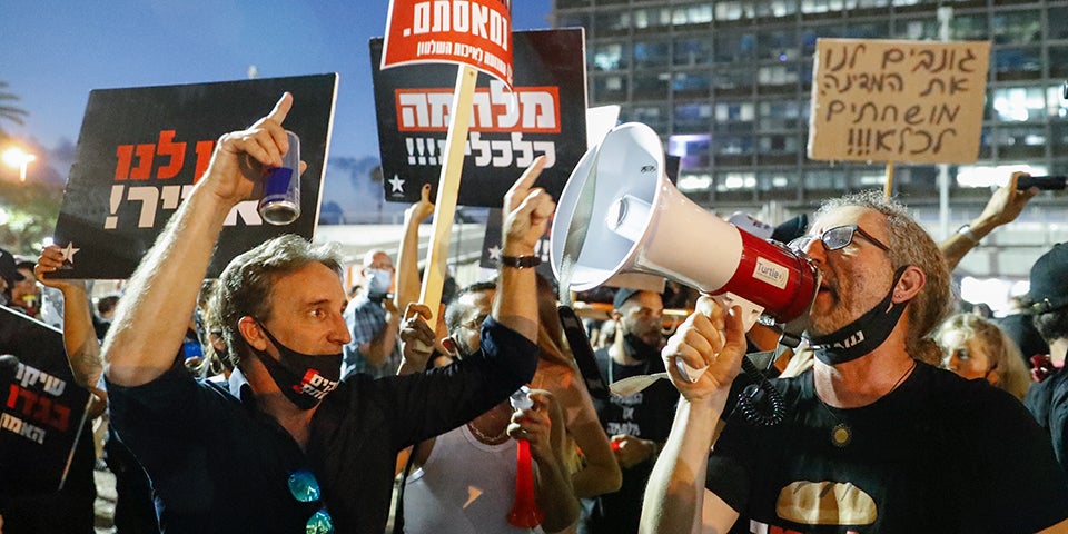 Der Protest wurde von Organisationen von Arbeitern, Freiberuflern und Kleinunternehmen organisiert, auch Studentenorganisationen beteiligten sich. Sie werfen der Regierung vor, die Menschen seien nach der Verhängung von Corona-Beschränkungen auf sich allein gestellt. "Es gibt eine schwere Vertrauenskrise zwischen der Regierung und uns", sagte Mitorganisator Shai Berman am Samstag Israels öffentlich-rechtlichem Rundfunk.