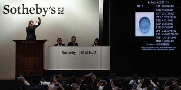 Der bisherige Rekordpreis für chinesisches Porzellan lag bei 36,05 Millionen Dollar (rund 30 Millionen Euro) für einen Weinkelch aus der Ming-Dynastie. Der weiße Porzellankelch war 2014 von einem der reichsten Männer Chinas, Liu Yiqian, ersteigert worden. Der vom Taxifahrer zum Finanzier aufgestiegene Liu gehört zur neuen Klasse der Superreichen in China, die auf der ganzen Welt in großem Stil Kunst und Kunsthandwerk kauft.