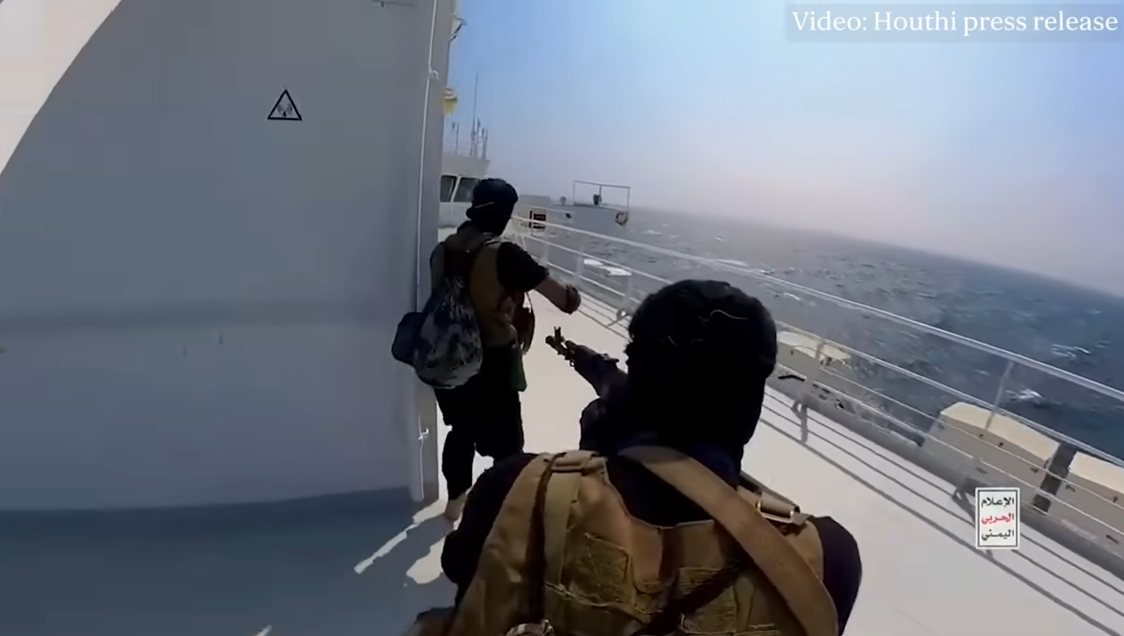 Die Rebellen hatten alle Staaten der Welt aufgerufen, keine Landsleute mehr in die Besatzungen dieser Schiffe zu schicken und mit diesen keine Geschäfte mehr zu machen. Grund für den Schritt sei die "israelisch-amerikanische Aggression" im Gazastreifen. In den vergangenen Wochen hatten die vom Iran unterstützten Houthi-Rebellen im Jemen eigenen Angaben nach mehrfach Drohnen und Raketen vom Süden der Arabischen Halbinsel Richtung Israel abgefeuert. Die Houthis haben ihr Waffenarsenal in vergangenen Jahren deutlich ausgebaut. Rebellenführer Abdel-Malik al-Houthi drohte in vergangenen Tagen in einer Rede bereits damit, "nach jedem israelischen Schiff im Roten Meer" Ausschau halten zu wollen.