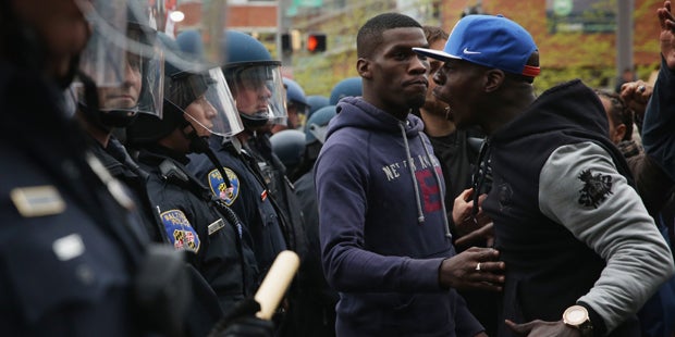 Die Lage eskalierte, als mehrere dutzend junge Demonstranten zum Camden Yards-Baseballstadion weiterzogen. Örtliche Fernsehsender zeigten Hubschrauberaufnahmen von der Menge, die Flaschen und Abfalleimer auf Polizisten warf. "Die Demonstranten schmeißen jetzt Fenster ein und werfen Gegenstände auf uns", erklärte die Polizei von Baltimore im Kurznachrichtendienst Twitter. Zugleich rief sie die Bevölkerung auf, die Ruhe zu bewahren.