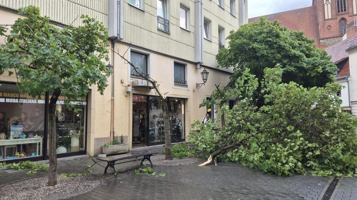 Die Berliner Straßen waren voller Laub und kleinerer Äste. Die Stadt sei vom Unwetter flächendeckend betroffen, wie ein Sprecher der Berliner Feuerwehr schilderte. Auch in Potsdam fielen Bäume um: Einige Straßen und Wege waren nicht mehr passierbar. In der niedersächsischen Landesvertretung in Berlin mussten die Vorbereitungen für das Sommerfest kurzzeitig unterbrochen werden. Auf dem Außengelände waren einige Schirme und andere Gegenstände umgekippt. Am beliebten Boxhagener Platz in Berlin-Friedrichshain stürzte ein großer Baum um und beschädigte einen Zaun.
