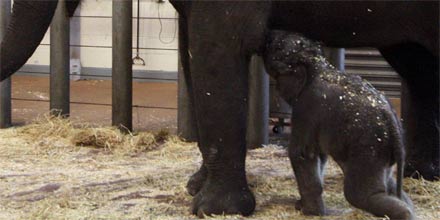 Ein zunächst totgeglaubtes Elefantenbaby in Sydney ist putzmunter: 24 Stunden nach seiner Geburt saugte der Mini-Dickhäuter am Donnerstag gierig bei seiner Mutter Porntip und hatte schon Gewicht zugelegt, berichtete der Taronga-Zoo. "Obwohl wir tagelang kein Lebenszeichen entdecken konnten, haben wir es jetzt ganz offensichtlich mit einem gesunden Kalb zu tun", sagte Zoodirektor Cameron Kerr. Wärter tauften den Kleinen "Mr. Shuffles" - etwa: Herr Schlurfi, berichtete die Zeitung "Herald Sun".