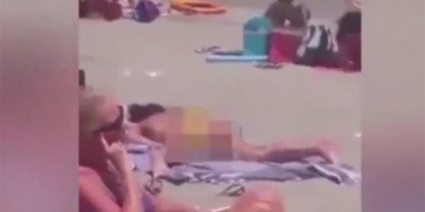 Eine Sonnenanbeterin an einem spanischen Strand hat für Gelächter und Empörung gesorgt. Die Dame lag ohne Oberteil auf einem Handtuch und befriedigte sich mit der Hand selbst. Dass um sie zahlreiche Kinder und Familien waren, schien sie nicht zu stören.