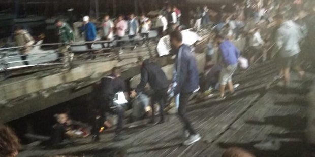 Beim Einsturz einer Zuschauertribüne bei einem Musikfestival in der nordspanischen Stadt Vigo sind mehr als 250 Menschen verletzt worden. Fünf Besucher erlitten bei dem Unglück in der Nacht auf Montag schwere Verletzungen, wie die Behörden mitteilten.