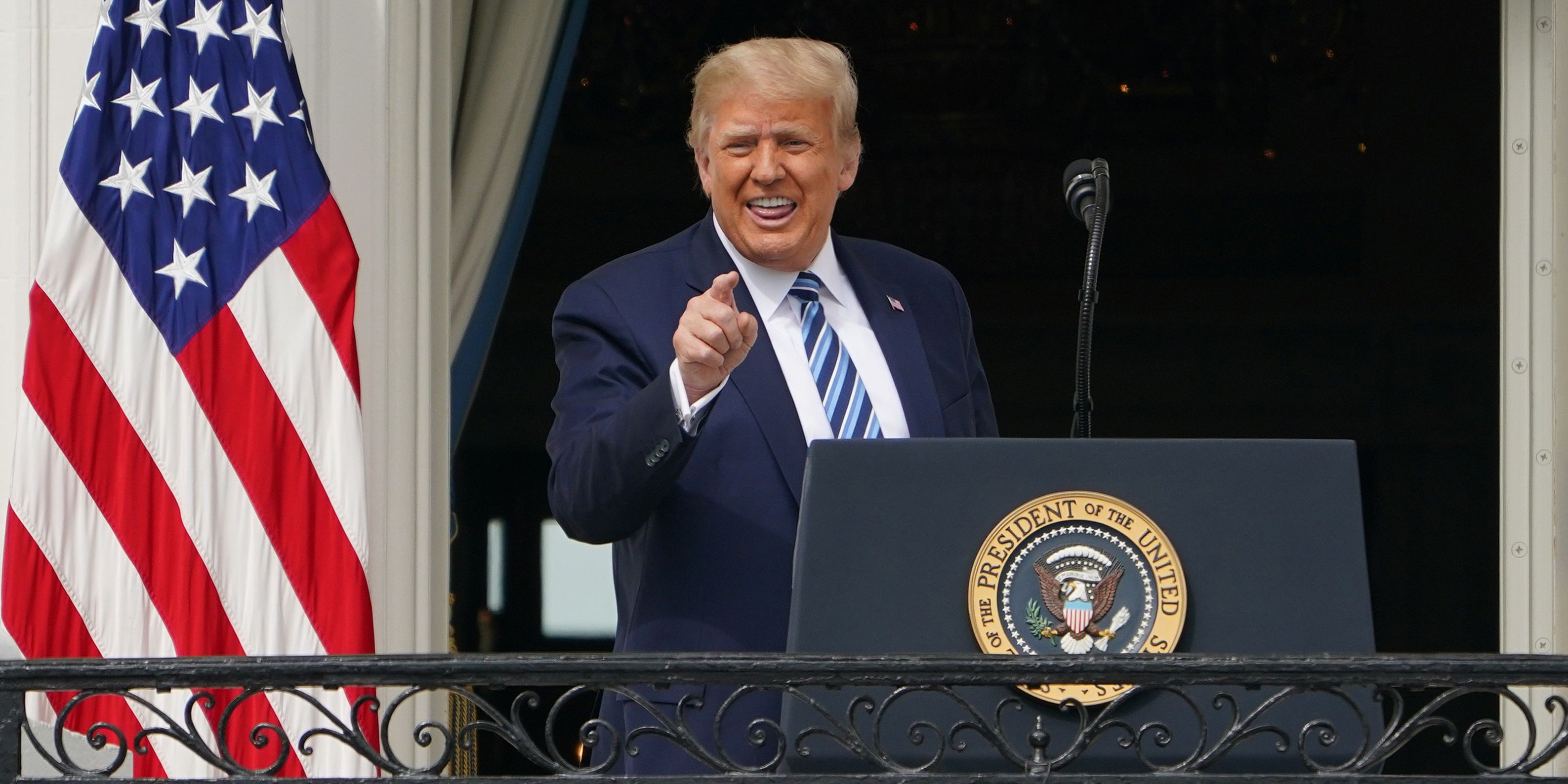 Der Präsident stand dabei auf dem Balkon des Weißen Hauses und sprach zu Anhängern auf dem Rasen unter ihm. Im Gegensatz zu früheren Veranstaltungen im Weißen Haus sollten diesmal aber nach Angaben aus Regierungskreisen alle Teilnehmer Masken tragen, zudem soll vorab ihre Temperatur gemessen werden. Laut CNN trugen aber nicht alle Teilnehmer Masken und hielten Sicherheitsabstände nicht ein.