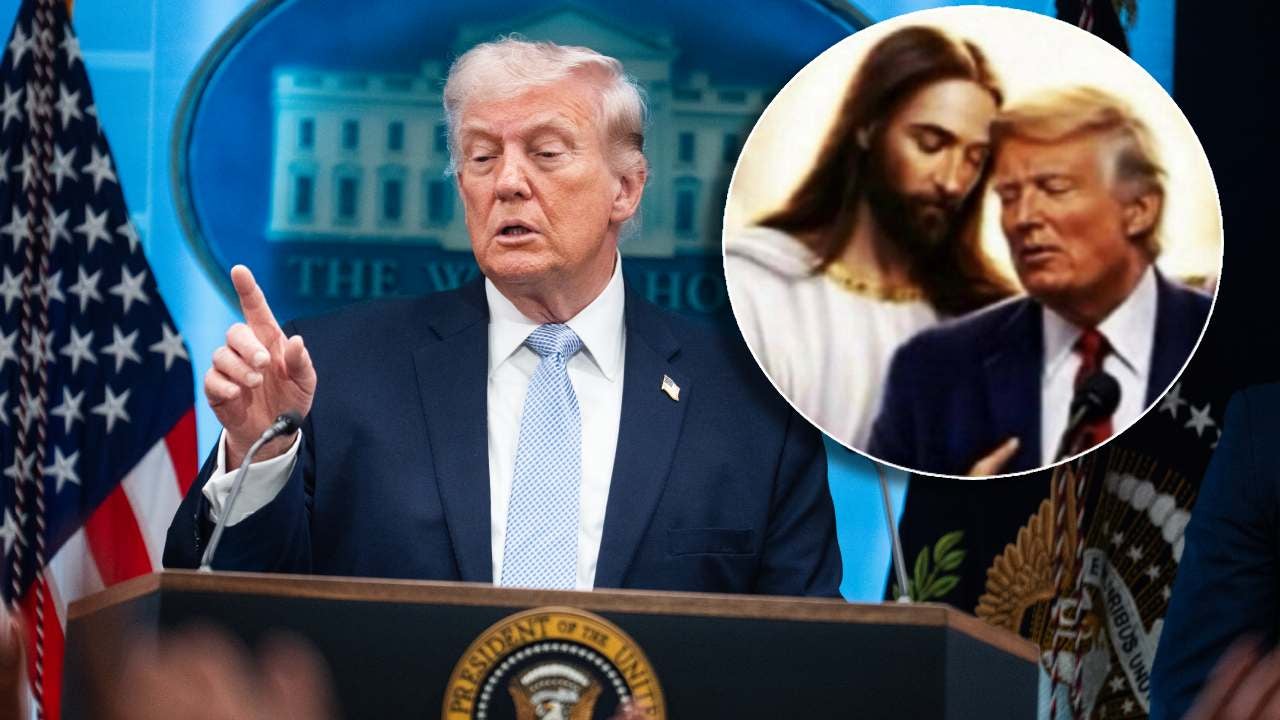 Donald Trump sorgt erneut für Empörung m Netz: Nach heftiger Kritik legt der US-Präsident nach. Diesmal zeigt ihn ein KI-Bild Seite an Seite mit Jesus.