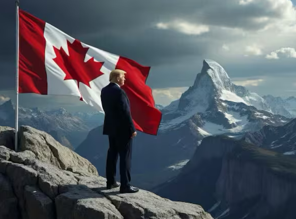 Donald Trump admires Canada so much, he went to Switzerland with our flag so he could gaze at it and the Matterhorn at the same time