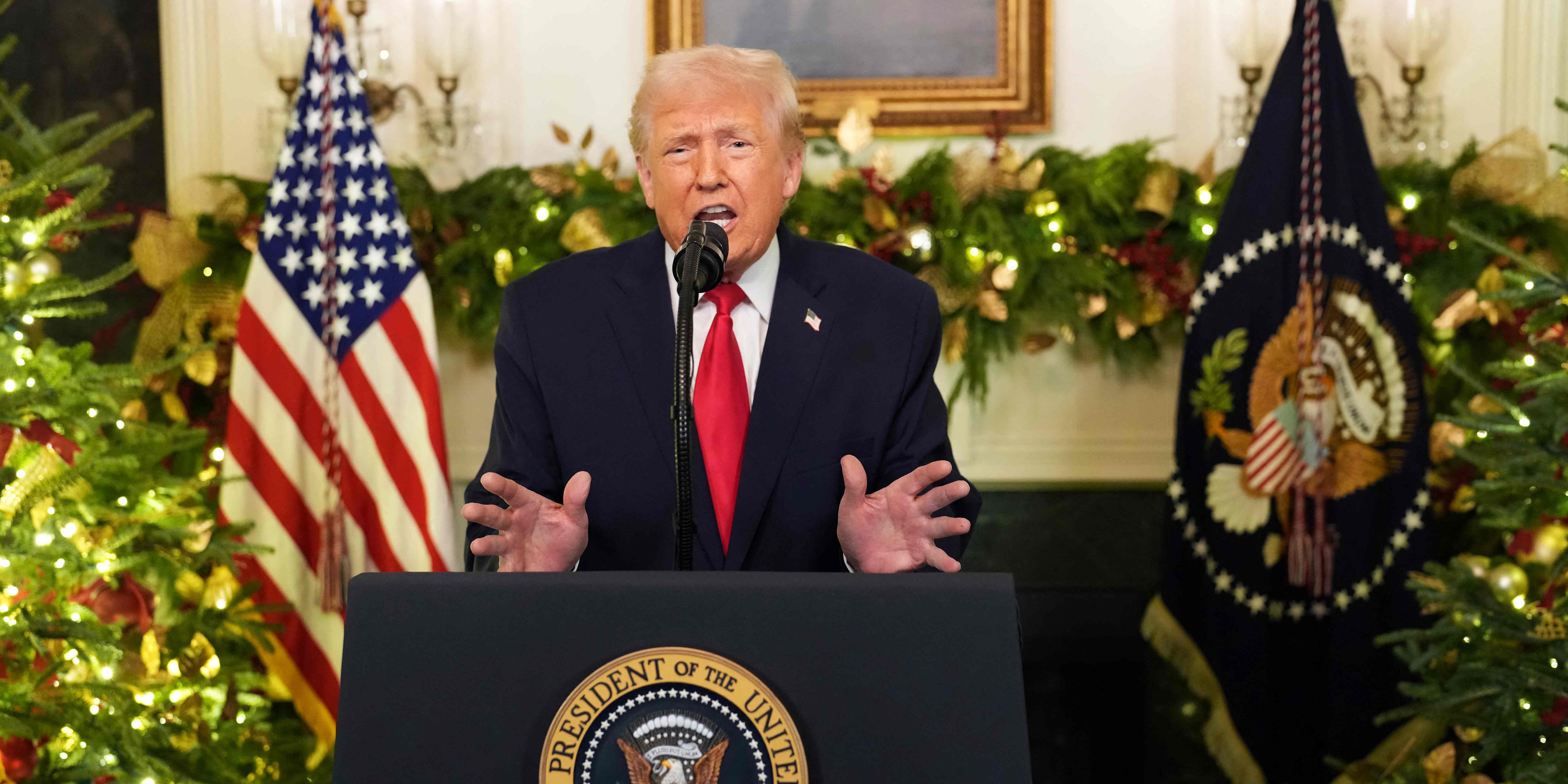 Washington. Er stand zwischen zwei Weihnachtsbäumen im Weißen Haus und verschenkte Geld an "Krieger", wie er die US-Soldaten neuerdings nennt: US-Präsident Donald Trump hielt eine Rede an die Nation und verteidigte darin seine in die Kritik geratene Wirtschaftspolitik. Die wichtigsten Erkenntnisse seiner Ansprache: