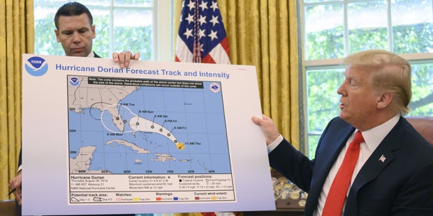 Stellte Hurrikan "Dorian" jemals, wie von Präsident Donald Trump behauptet, eine Gefahr für den US-Staat Alabama dar? Über diese Frage streitet Washington - auch weil Trump immer wieder nachlegt, zuletzt sogar mit einer offenbar per Hand abgeänderten Karte des Hurrikan-Verlaufs.