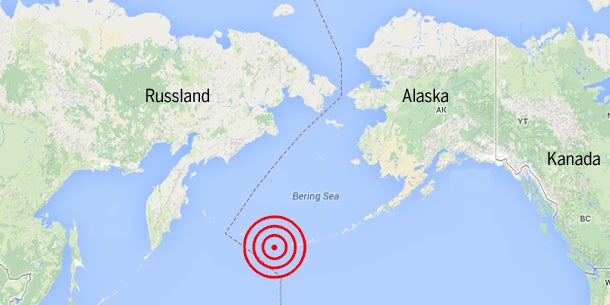 Der Erdstoß der Stärke 7,9 hatte sich am Montagabend (Ortszeit) etwa 24 Kilometer südöstlich der Insel Little Sitkin ereignet. Die Erdbebenwarte hatte die Stärke zunächst mit 8,0 beziffert. Das Beben ereignete sich im Meer in einer Tiefe von rund 110 Kilometern. Nach USGS-Angaben gab es zunächst keine Berichte über Schäden.