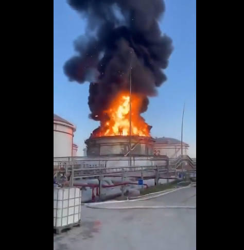 ???? More footage from the port of #Taman, #Russia, located right next to #Crimea, where an oil depot is on fire. pic.twitter.com/v9p7nS3wxo