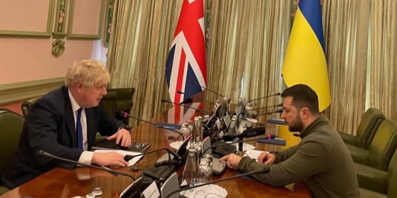 Auch die britische Außenministerin Liz Truss stellte ein Foto von Johnson und Selenskyj auf Twitter. Selenskyj bezeichnete Großbritannien als "Führer bei der Verteidigungsunterstützung der Ukraine".