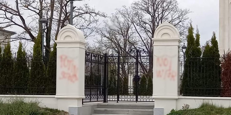 Laa/Thaya. Unbekannte haben auf dem Zaun einer russisch-orthodoxen Kirche im niederösterreichischen Laa an der Thaya aus Protest gegen den russischen Angriffskrieg ein Graffiti hinterlassen. Die bereits retuschierte Stelle lässt auf einem Foto, das die russische Botschaft auf Twitter veröffentlichte, die Worte "Putin" und "Stop War" deutlich erkennen.