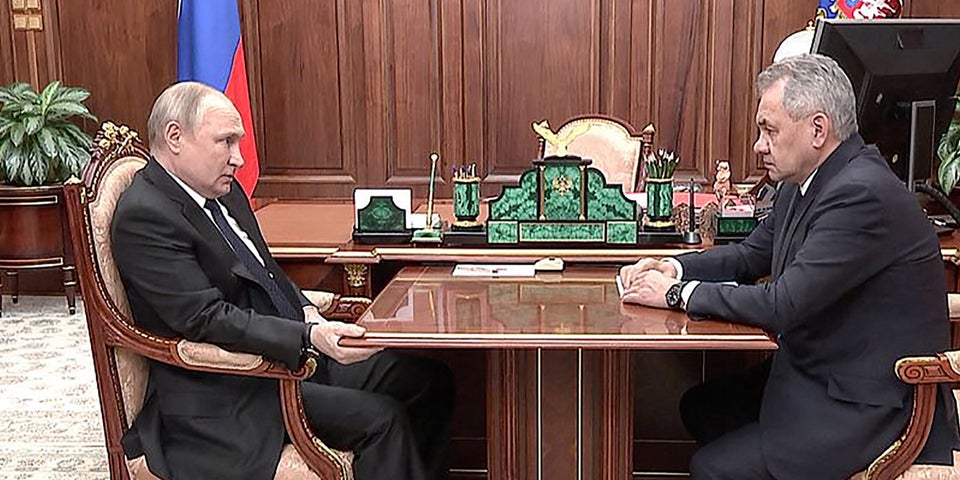 Putin ließ sich am Donnerstag von Verteidigungsminister Schoigu über die Erfolge der russischen Armee in Mariupol unterrichten. Der Kreml-Chef saß dabei zusammengesunken auf seinem Stuhl und wirkte energielos. Zudem musste sich der 69-Jährige offenbar am Tisch festhalten.