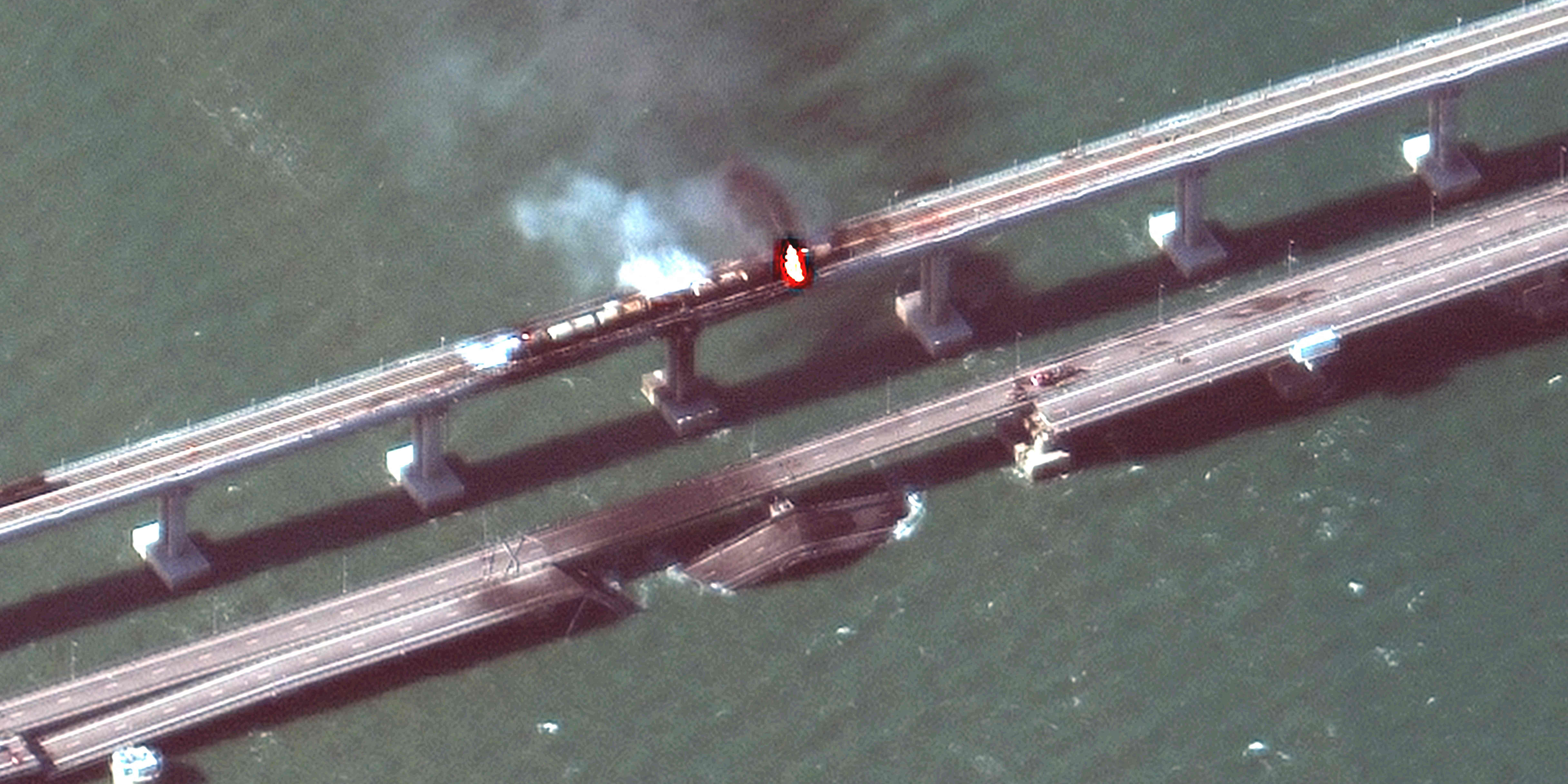Die für Russland strategisch und symbolisch wichtige Krim-Brücke war Samstagfrüh von einer schweren Explosion erschüttert worden. Videos zeigen große Schäden. Die genauen Hintergründe sind noch unklar. Russischen Angaben zufolge ist ein Lastwagen explodiert. Dadurch sollen nach Darstellung russischer Ermittler weiter entfernt gleich sieben Kesselwagen mit Diesel in Brand geraten sein. Außerdem stürzten Teile der Brückenautobahn ins Meer.