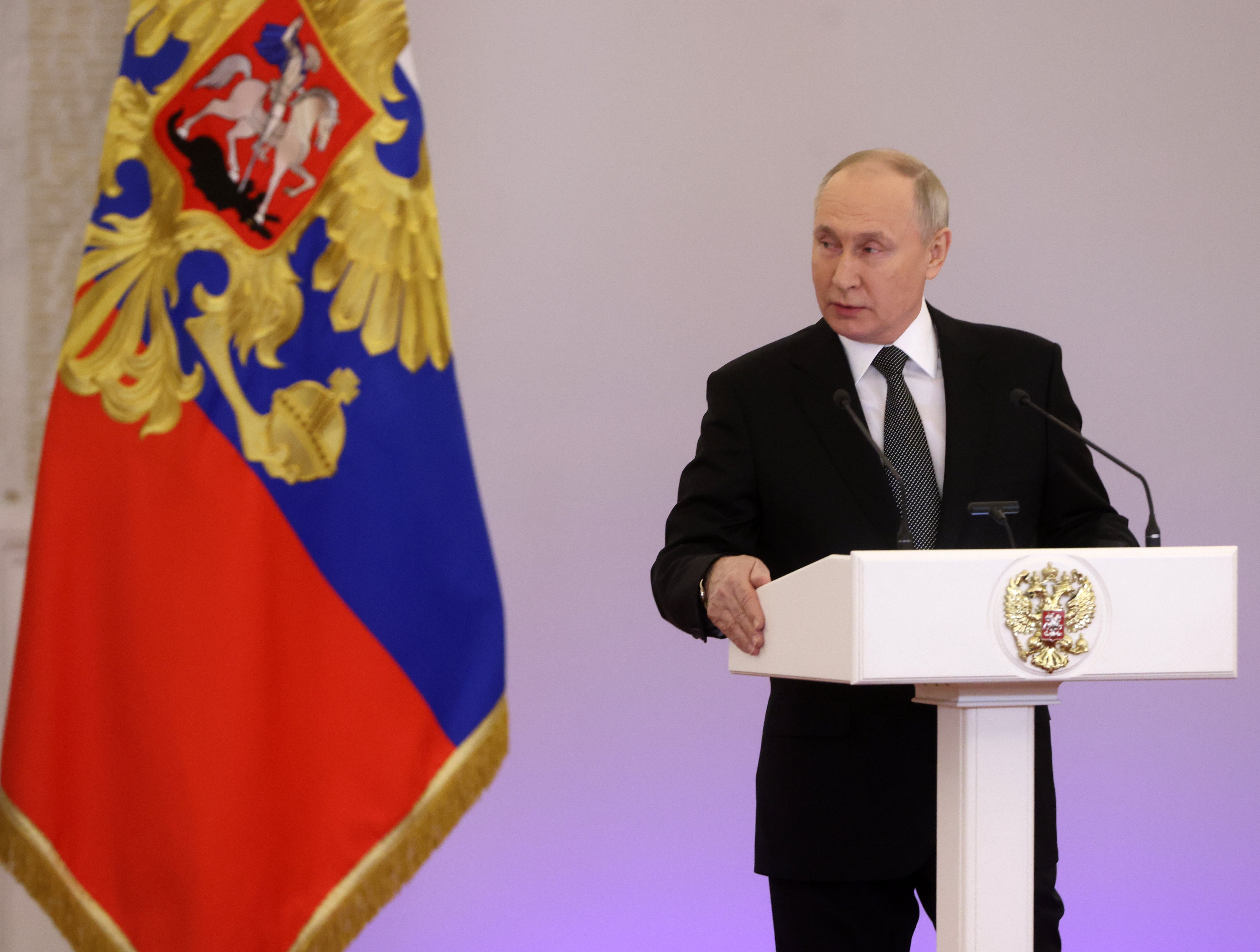 "Sie sind völlig verrückt geworden, oder um es einfacher auszudrücken, sie sind völlig unverfroren geworden", sagte Putin mit einem Glas Sekt in der Hand bei einem Treffen im Kreml mit in der Ukraine kämpfenden russischen Militärs. Ausschnitte davon zeigte der kremlnahe Berichterstatter des russischen Staatsfernsehens, Pawel Sarubin, am Sonntag auf seinem Telegram-Kanal.