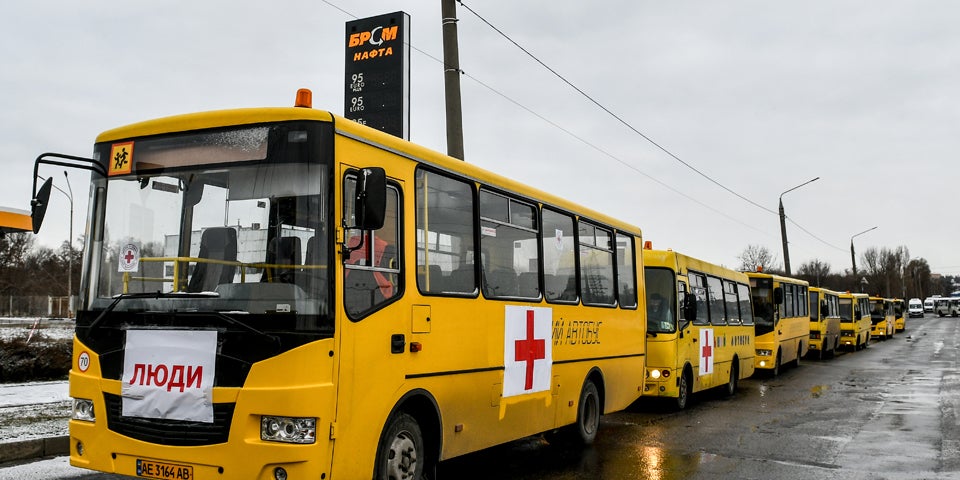 Nach einer russischen Zusicherung für einen zwischenzeitlichen Waffenstillstand hat die ukrainische Regierung 45 Busse in die belagerte südostukrainische Hafenstadt Mariupol geschickt.