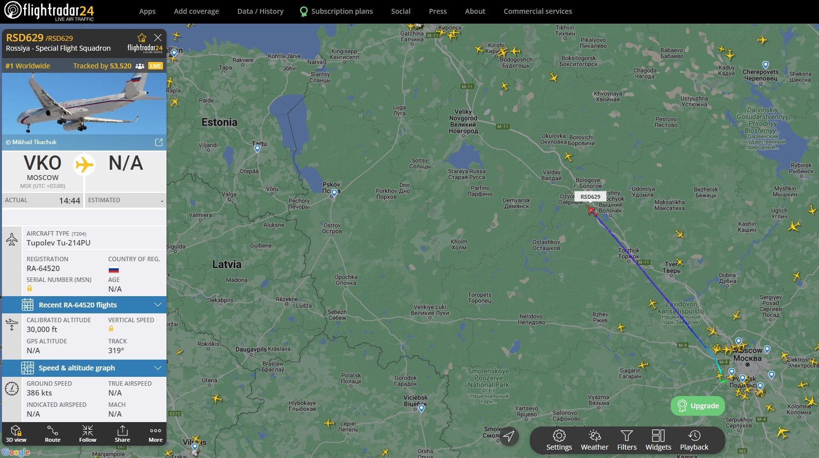 Russian government planes are fleeing from Moscow to Sankt Petersburg. #Coup #Russia #Moscow #SanktPetersburg pic.twitter.com/F4pH69cuf7
