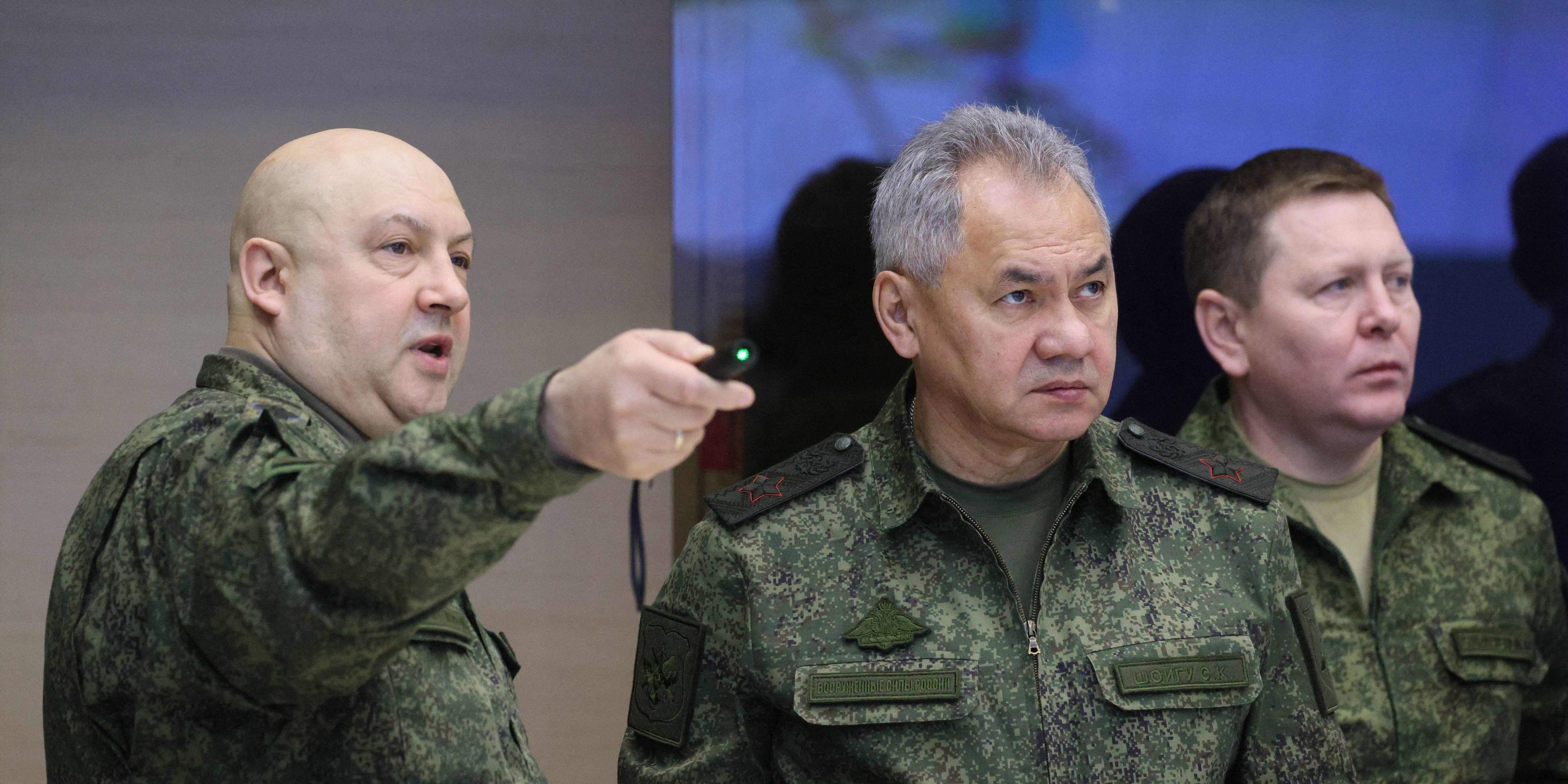 Schoigu habe sich laut eigener Darstellung die Berichte der Kommandeure angehört und mit einfachen Soldaten gesprochen.