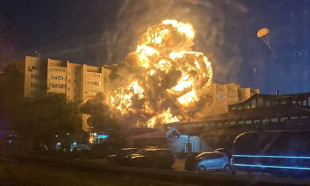 Videos, die angeblich aus der Stadt stammen, zeigten eine große Explosion dicht an dem Hochhaus. Dann waren kleinere Detonationen zu hören. Ein Teil des Gebäudes fing bis zum Dach hinauf Feuer. Nach offiziellen Angaben gelang es 400 Rettungskräften bis zum Abend, den Brand zu löschen. Das Haus sei nicht einsturzgefährdet. In einer nahe gelegenen Schule sei niemand verletzt worden.