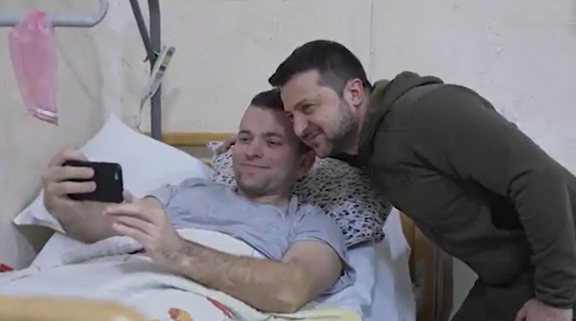 Erstmals seit Kriegsbeginn hat der ukrainische Präsident Wolodymyr Selenskyj sichtbar für die Öffentlichkeit seinen Amtssitz verlassen und Verwundete in einem Militärkrankenhaus besucht.