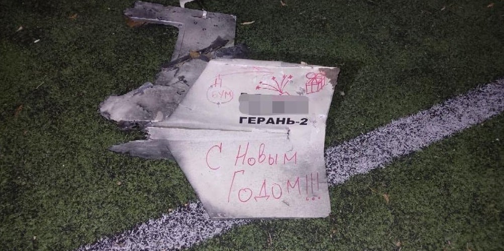 Die russische Armee habe die Drohnen offenbar auch für zynische Neujahrsgrüße benutzt, berichtet der Polizeichef der Region Kiew, Andrij Nebitow. Auf den Trümmerteilen einer Schahded-Drohne fand sich demnach die Aufschrift: "Frohes neues Jahr".