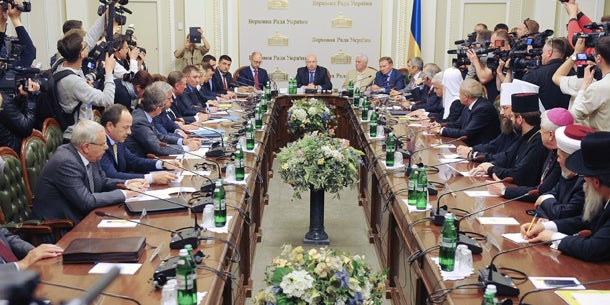 Der erste Runde Tisch zur Krisenbewältigung in der Ukraine ist am Mittwoch in Kiew ohne greifbares Ergebnis zu Ende gegangen. Vertreter der prorussischen Separatisten aus dem Osten des Landes waren von vornherein nicht eingeladen. "Wir sind zum Dialog bereit, aber nicht mit Erpressern und Plünderern", verteidigte Übergangspräsident Alexander Turtschinow den Ausschluss der moskautreuen Aktivisten.