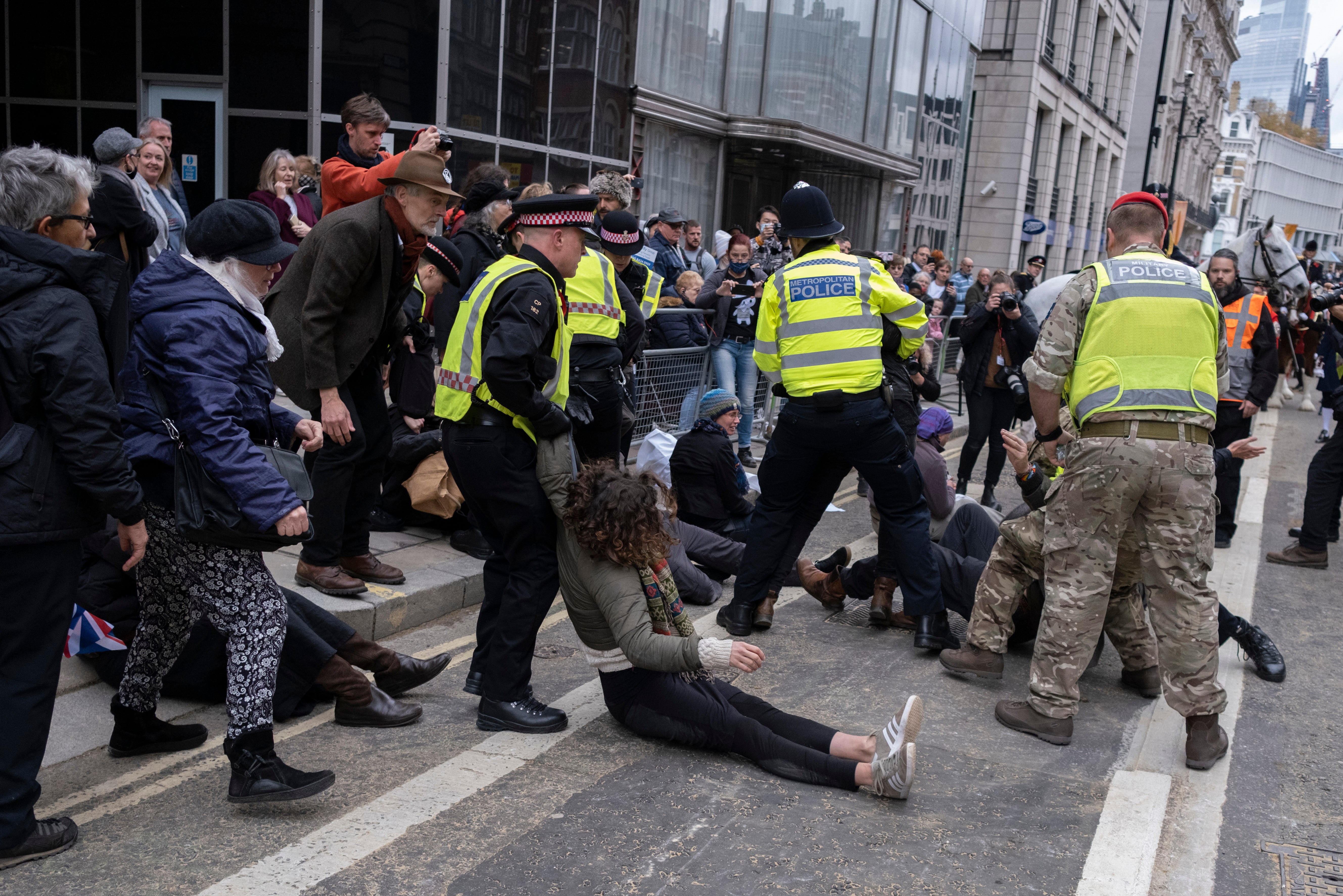 Umweltschützer haben am Samstag in Londons Finanzdistrikt die traditionelle Parade zur Einführung des Lord Mayors gestört.