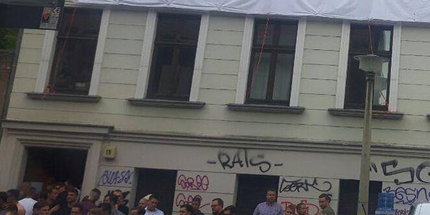 Demnach wurden bis zu 30 Angreifer gezählt. An der Haustür sei "eine übelriechende Flüssigkeit" freigesetzt worden, erklärte die Polizei. Zudem seien "mittels Pyrotechnik mehrere Müllcontainer angezündet" worden. Auch drei an der Straße geparkte Autos wurden demnach beschädigt. Die dunkel gekleideten und vermummten Täter seien nach wenigen Minuten unerkannt entkommen. Der polizeiliche Staatsschutz ermittelt wegen schweren Landfriedensbruchs.