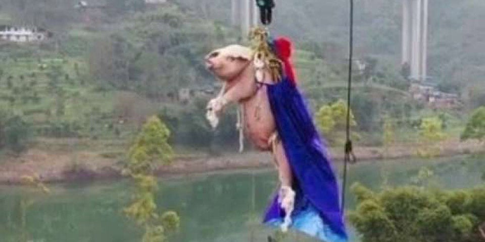 Chongqing. Zur Eröffnung eines Turms für Bungee-Sprünge in einem Vergnügungspark in der südwestchinesischen Metropole Chongqing ist ein Schwein an einem Seil in die Tiefe gestürzt worden. Die Videos von dem verängstigt quiekenden Vierbeiner sorgten für große Empörung unter Chinesen, die dem Park schlimme Tierquälerei vorwarfen.