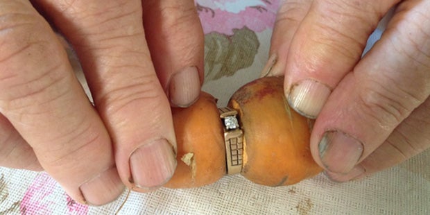 Das Unglaubliche: Nun ist das Schmuckstück wieder aufgetaucht - durch eine Karotte, die in den Ring hineingewachsen ist.