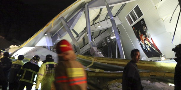 Das berichtete die Zeitung "The Korea Herald" online unter Berufung auf Einsatzkräfte an der Unglücksstelle in der südöstlichen Stadt Kyongju. Bergungsmannschaften suchten Fernsehberichten zufolge nach den Eingeschlossenen. Mehr als 70 Menschen seien verletzt worden, als das Dach vermutlich unter der Last schwerer Schneemassen eingebrochen sei.