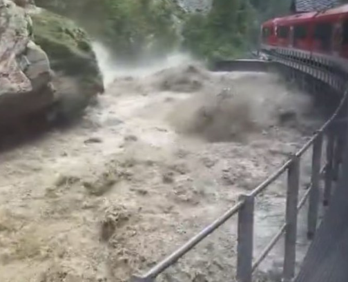 Die Bahnstrecke von Visp nach Zermatt war teils beschädigt und gesperrt. Der autofreie Ort am Matterhorn im Kanton Wallis war mehr als 24 Stunden von der Außenwelt abgeschnitten. Nur auf den letzten Kilometern ab Täsch verkehrten ab Samstagabend wieder Züge. Ansonsten fuhren Busse als Ersatz.