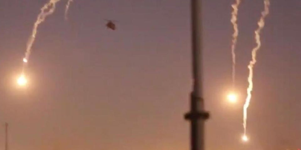 US-Hubschrauber feuert Signalraketen ab