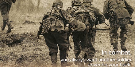 Einem Politiker in North Carolina ist im Wahlkampf eine peinliche Panne unterlaufen. Auf einem Handzettel, auf dem der demokratische Abgeordnete Tim Spear beteuert, er "deckt unseren Soldaten den Rücken", sind vier Darsteller in Uniformen der deutschen Wehrmacht zu sehen.