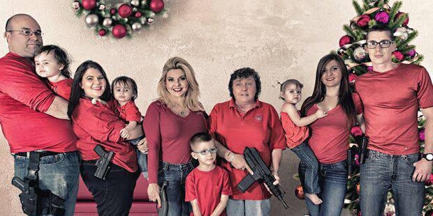 Nicht erst seit den Attentaten in Colorado Springs und San Bernardino wird über strengere Waffengesetze diskutiert. Wie die Republikanerin Michele Fiore dazu steht, zeigt sie stolz auf ihren Facebook-Posts und auch auf der umstrittenen Weihnachtskarte. Schockierend ist nicht nur die schwer bewaffnete 10-köpfige Familie sondern auch, dass selbst der 5-jährige Neffe der US-Politikerin eine Walther p22 Selbstladepistole in der Hand hält.