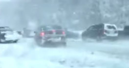 In dem spektakulären Video crashen 40 Autos auf schneebedeckter Fahrbahn in einer großen Karambolage ineinander. Ein Auto nach dem anderen fährt mit Karacho in den Graben am Highway 31.