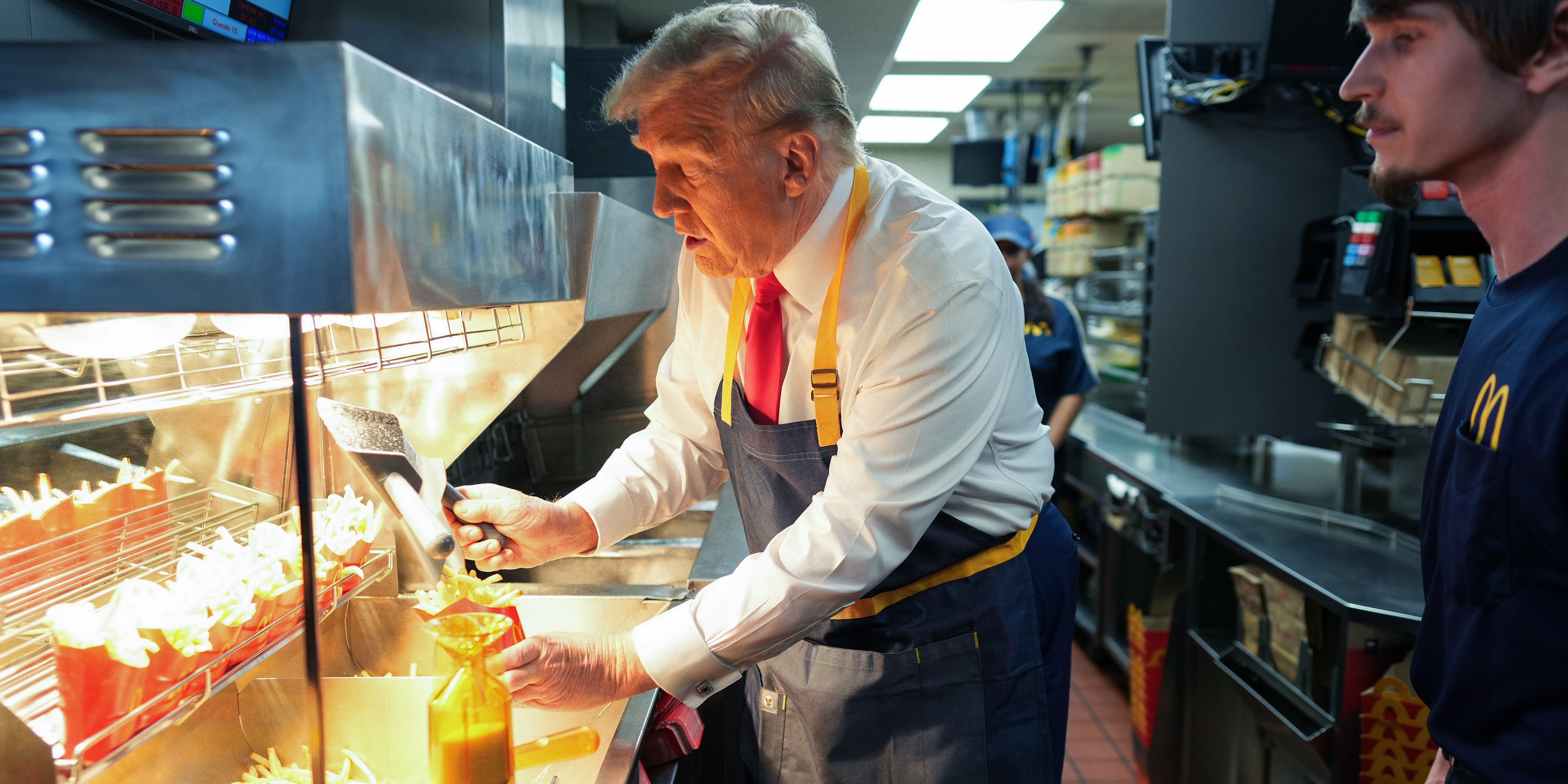 Trump trug bei der Aktion eine Schürze über Hemd und Krawatte. Nachdem ihm die Bedienung der Fritteuse erklärt wurde, gab er Bestelltes aus. Für die Aktion wurde die Filiale geschlossen und Trumps Kundschaft im Voraus ausgewählt.