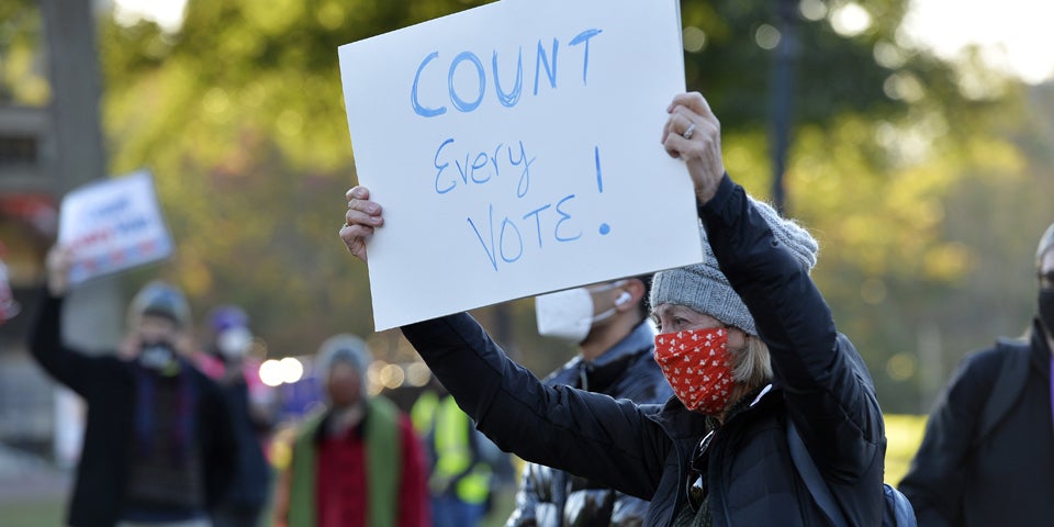 Das ist für manche Beobachter ein Alptraum. Was würde passieren, falls Biden Pennsylvania nur knapp mit Hilfe der verspätet eingetroffenen Briefwahlstimmen gewinnen würde? Falls die Richter die Stimmen für ungültig erklärten, verlöre Biden die 20 Wahlleute des Bundesstaats und damit womöglich die Wahl.