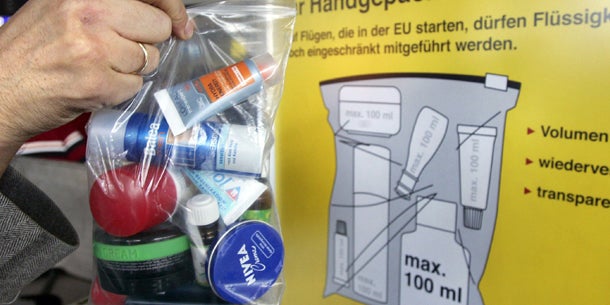 Aus Angst vor Terror-Anschlägen werden Flüssigkeiten im Handgepäck verboten.