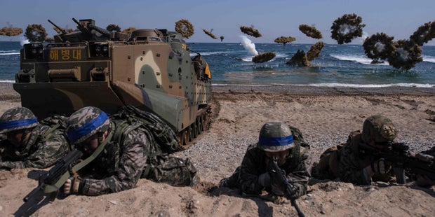 Im Zuge ihres bisher größten Militärmanövers haben die USA und Südkorea am Samstag eine Landungsoperation gegen das kommunistische Nordkorea simuliert. Beide Länder hätten eine Erstürmung der nordkoreanischen Strände geprobt, teilte die US-Marine mit. Es hätten sich 55 US-Marineflieger sowie 30 Schiffe aus den USA und Südkorea an der Übung in der Nähe der Stadt Pohang beteiligt.