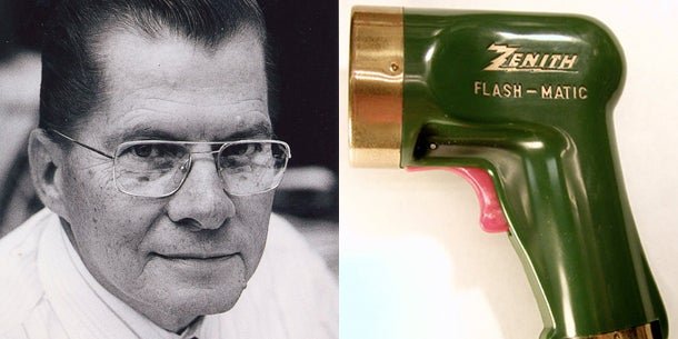 Die "Flash-Matic" blieb aber seine wichtigste Erfindung. Viel mehr als Kanäle wechseln und den Fernseher ein- und ausschalten war allerdings nicht möglich. Die "Flash-Matic" besaß einen großen Taster und funktionierte im Grunde wie eine Taschenlampe: Sie sendete einen gebündelten Lichtstrahl aus, der auf einen von vier Sensoren in jeder Ecke des Fernsehgeräts traf.