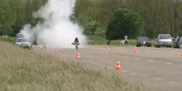 263 Stundenkilometer sind ziemlich schnell für ein Auto - doch im Elsass soll nun ein Mountainbike so rasant unterwegs gewesen sein. Eine Gruppe von Fahrradenthusiasten ließ das mit einer Art Raketenantrieb ausgestattete Gefährt auf einem früheren Militärgelände nahe dem französischen Mulhouse starten, wie der TV-Sender France 3 Alsace berichtete. Das an dem Mountainbike der Bastler angebrachte GPS habe dabei die schier unglaubliche Geschwindigkeit gemessen.