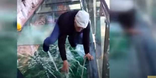 Dieses Video sorgt im Internet für Furore. Es zeigt einen Mann, der über eine gläserne Brücke geht. Doch plötzlich zersplittert das Glas, er rastet völlig aus, wirft sich zu Boden ...