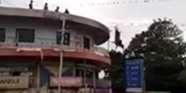 In Indien schockt derzeit ein Video die Netzgemeinde, das eine Kuh zeigt, die offenbar schon mit dem Leben abgschelossen hatte. Wie das Tier auf das Dach gekommen ist, steht nicht fest, ebenso weiß man nicht, ob die Kuh den waghalsigen Sprung überlebt hat. Wahrscheinlich ist das Tier in Panik geraten und sprang deshalb vom Dach.