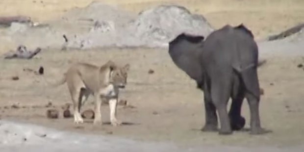 Cynthia Mack hat das Video im Hwange National Park in Simbabwe aufgenommen und auf Youtube gestellt. In kurzer Zeit hat das Video fast 500.000 Aufrufe erreicht. Der Baby-Elefant war am Knie verletzt, als er verzweifelt zur Wasserstelle eilt, um zu trinken. In diesem Moment werden die Löwen aufmerksam, erzählt Mack.