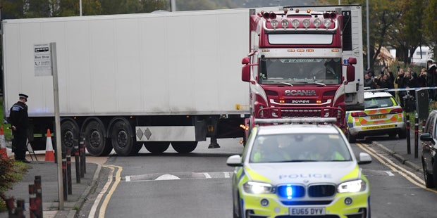 Spurensicherer in Schutzanzügen untersuchten am Mittwoch in Grays den großen weißen Auflieger und das rote Fahrerhaus des Lastwagens. "Wir sind dabei, die Opfer zu identifizieren, aber ich gehe davon aus, dass das länger dauern könnte", sagte Andrew Mariner von der Polizei der Grafschaft Essex. Der Chef des britischen Lastwagenfahrer-Verbands Road Haulage Association, Richard Burnett, sagte, der Vorfall zeige die "Gefahr" des Menschenschmuggels in Lastwagen auf.
