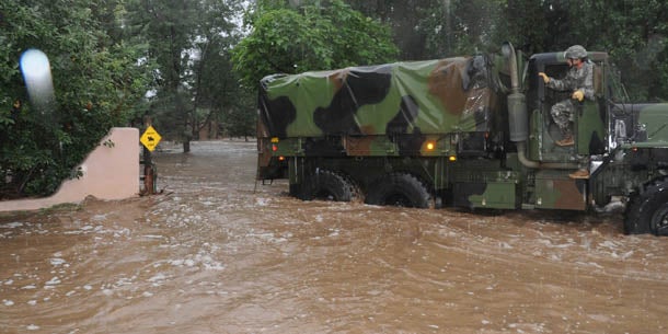 US-Präsident Barack Obama hat für die Region den Notstand ausgerufen, nachdem dort an einem Tag mehr Regen gefallen war als sonst in einem ganzen Jahr. Straßen verwandelten sich in reißende Flüsse, Autos und auch Häuser wurden von den Wassermassen mitgerissen. Tausende Menschen sind vor den Fluten auf der Flucht. In der Nacht zum Samstag (Ortszeit) wurden CNN zufolge etwa 800 Menschen aus zwei Ortschaften von Angehörigen in Sicherheit gebracht.